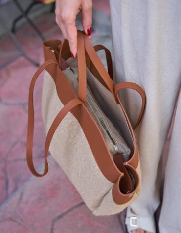 Madamra Kontrast Tote Çanta Taba