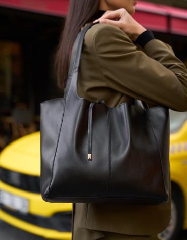 Madamra Shopper Yumuşak Deri Ayarlanabilir Askılı Omuz Çantası Siyah