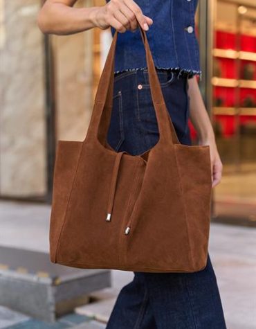 Madamra Shopper Yumuşak Deri Ayarlanabilir Askılı Omuz Çantası Taba Süet