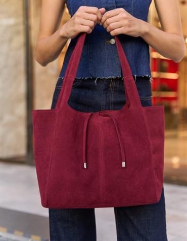 Madamra Yumuşak Süet Bağcık Detaylı El Ve Omuz Çantası Bordo Süet