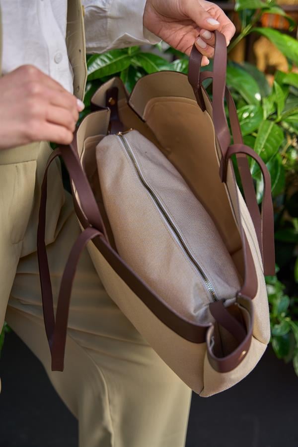 Madamra Kadın Kontrast Tote Çanta, modern ve şık tasarımıyla günlük kullanımda şıklığınızı tamamlayan mükemmel bir aksesuardır. Siyah ve krem renklerinin kontrastı, çantaya zarif bir görünüm kazandırırken, geniş iç hacmi ve pratik taşıma tasarımı sayesinde kullanım kolaylığı sunar. Hem günlük hem de ofis kullanımına uygun olan bu tote çanta, stilinizi öne çıkarırken işlevsellikten ödün vermez.Ürün Detayları:Üretim Yeri: Türkiye’de üretilmiştir. Yüksek kaliteli malzeme ve özenli işçilikle tasarlanmıştır.Malzeme:Üst Kısım: Dayanıklı ve kaliteli suni deri.İç Kısım: Yumuşak astar, eşyalarınızı güvenle taşımanızı sağlar.Boyutlar:Genişlik: 33 cmYükseklik: 30 cmDerinlik: 12 cmKapama Tipi: Açık uçlu tasarım, hızlı erişim sağlar.İç Bölmeler:Geniş ana bölme, günlük eşyalarınızı rahatça taşımanıza olanak tanır.İç kısmında bir fermuarlı cep, küçük eşyalarınızı düzenli tutmanıza yardımcı olur.Taşıma Detayı:Uzun tutma kulpları, omuzda rahatça taşıma imkanı sunar.Ürünümüzün Hasır Modeli hassas yapıya sahiptir, özel el işçiliği ile dokuma hasırdan üretilmiştir.Kullanım Alanları:Bu şık tote çanta, ofis, alışveriş, günlük kullanım gibi farklı alanlarda rahatça kullanılabilir. Siyah ve krem renginin uyumu, her türlü kıyafetle mükemmel uyum sağlar. Hem şık hem de pratik olan bu çanta, stilinizi tamamlayacak mükemmel bir tercihtir.Bakım Talimatları:Suni deri yüzeyini nemli bir bezle silerek temizleyiniz.Çantanızı doğrudan güneş ışığından uzak tutarak saklayınız.Su ile doğrudan temasından kaçınınız, uzun ömürlü kullanım sağlarsınız.Öne Çıkan Özellikler:Siyah ve krem renklerinin zarif kontrastı, her kombine uyum sağlar.Geniş iç hacmi ve bölmeleri, eşyalarınızı düzenli bir şekilde taşımanıza olanak tanır.Uzun kulplar, rahat taşıma sağlar.Şık ve fonksiyonel tasarım, her türlü ortamda kullanılabilir.Madamra Siyah-Krem Kadın Kontrast Tote Çanta, şıklığı ve fonksiyonelliği bir arada sunarak günlük kullanımda vazgeçilmez bir seçenek olacaktır. Geniş iç hacmi ve zarif tasarımıyla, her anınızda yanınızda olacak!