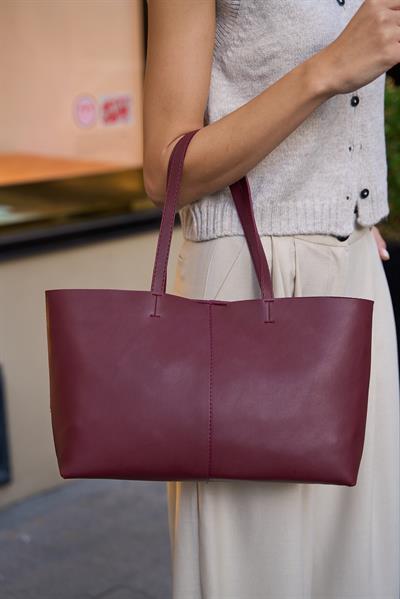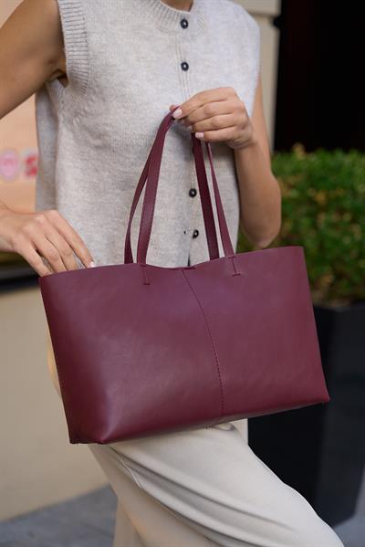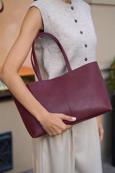 Madamra Minimal Tote El Ve Omuz Çantası Bordo