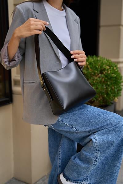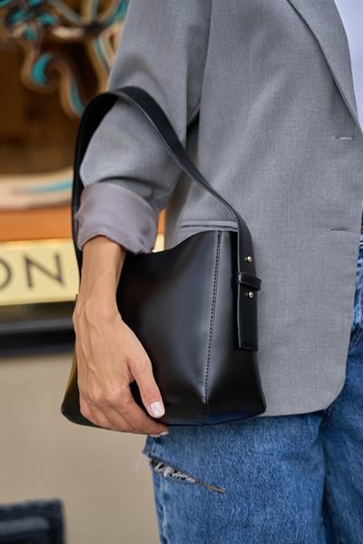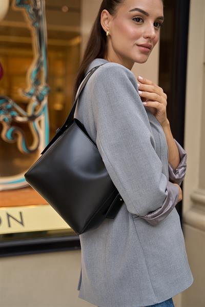 Madamra Shopper Yumuşak Deri Ayarlanabilir Askılı Omuz Çantası Siyah